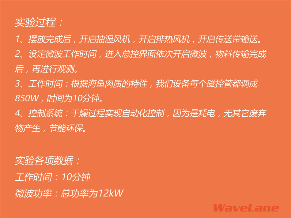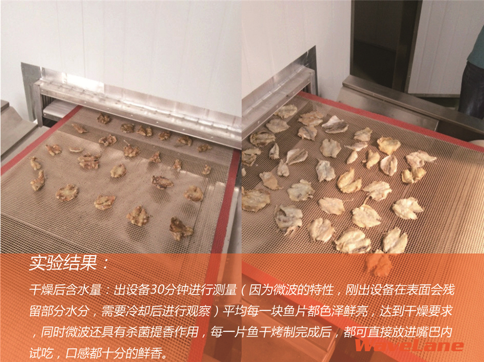 > 测试各类鱼产品,在微波作用下能否达到干燥要