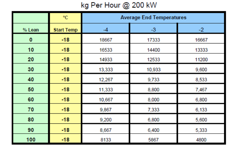微波是连续式设备,解冻的时间和成本是其它方式所无法比拟的,下图是200kW设备每个小时的产能: