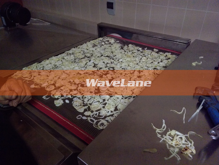 2、采用100kW微波+50kW热风的干燥方式,微波快速的提取作物的内部水分,并且不改变物料的颜色,热风让物料表面产生烘烤感,提升产品品质。